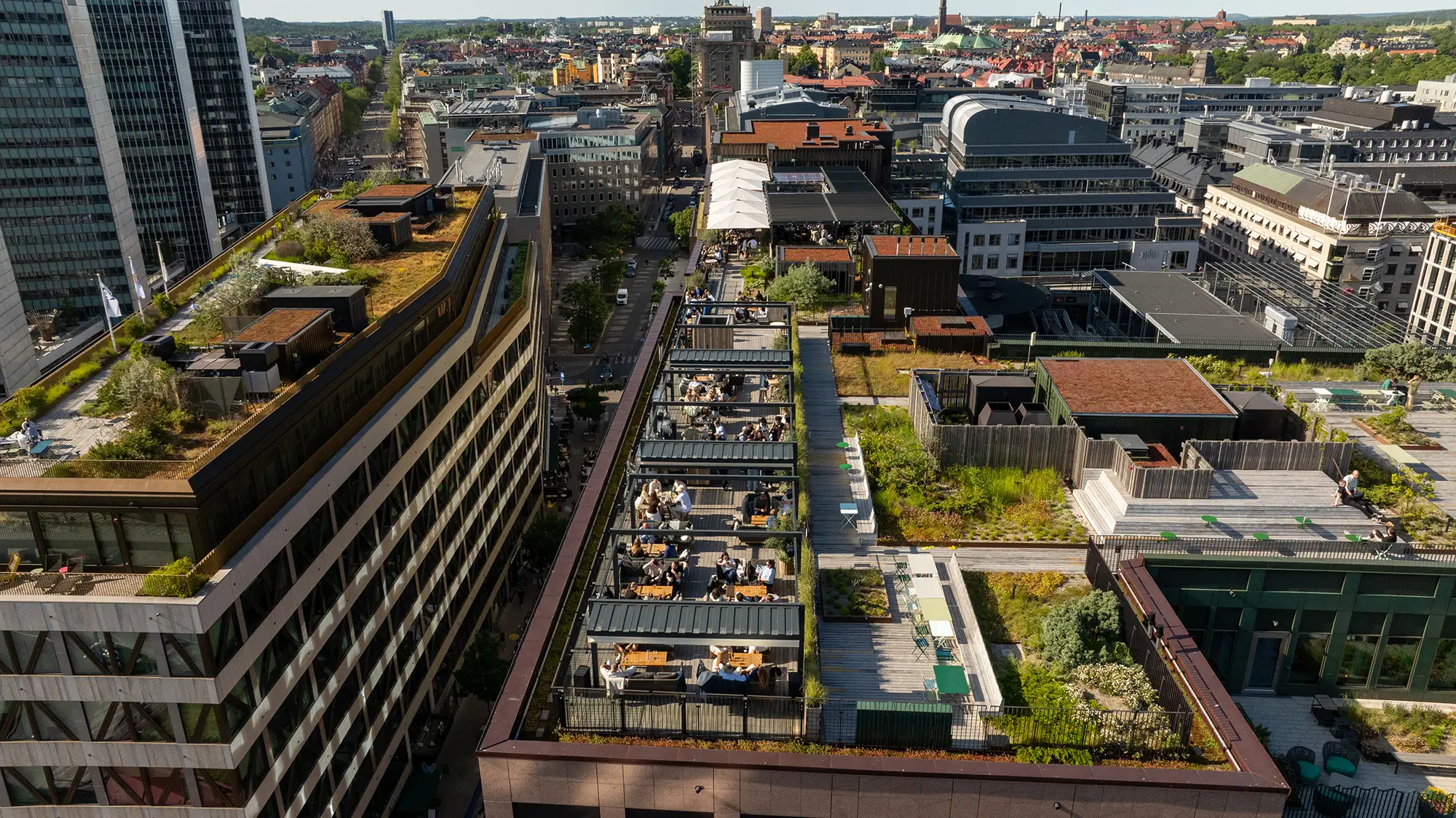 Det finns även möjlighet att hålla privata event under bar himmel. Med baren intill och staden som kuliss blir det en naturlig samlingsplats under årets ljusa månader oavsett om du kommer för ett snabbt glas eller för att stanna hela kvällen.